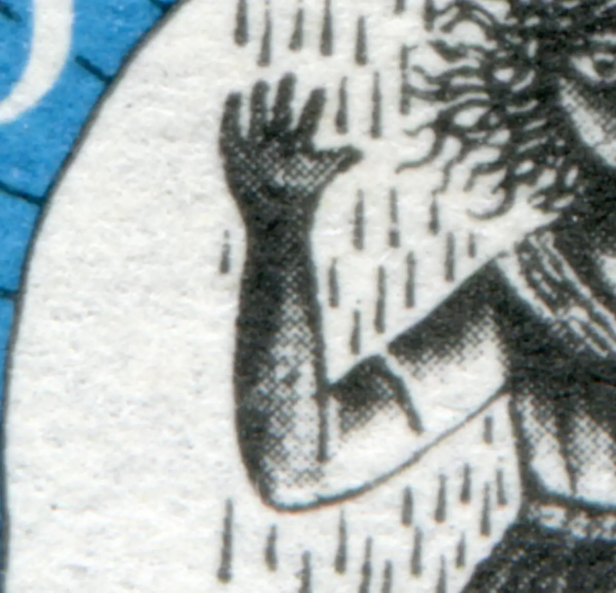 313 Wofa 50 Pf. als ER-Vbl. o.r. - PLF Rasterausfall im Arm, Feld 9, ESSt