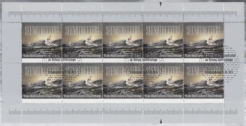 3153 Gesellschaft zur Rettung Schiffbrüchiger: 10er-Bogen auf Kartonvorlage ESST