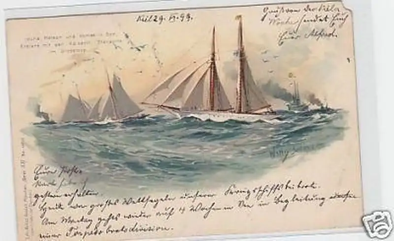 Erstere mit der Kaiserin Standarte im Großtopp, gelaufen, guter Zustand (minimale Fehlecke) siehe Bild,