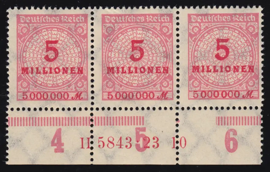 317 HAN Infla 5 Mio Mark als Unterrand-Dreierstreifen mit HAN, ungefaltet, **