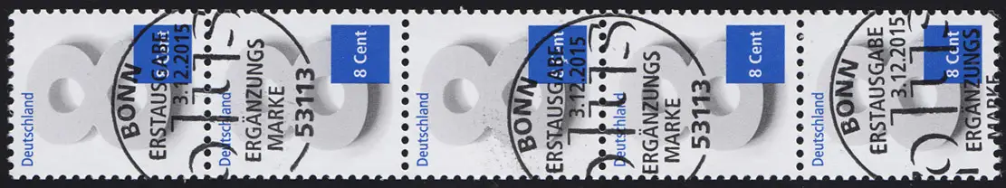3188 Acht Cent 5er-Streifen mit GERADER Nummer, ESSt Bonn 3.12.15