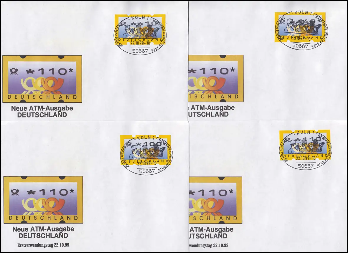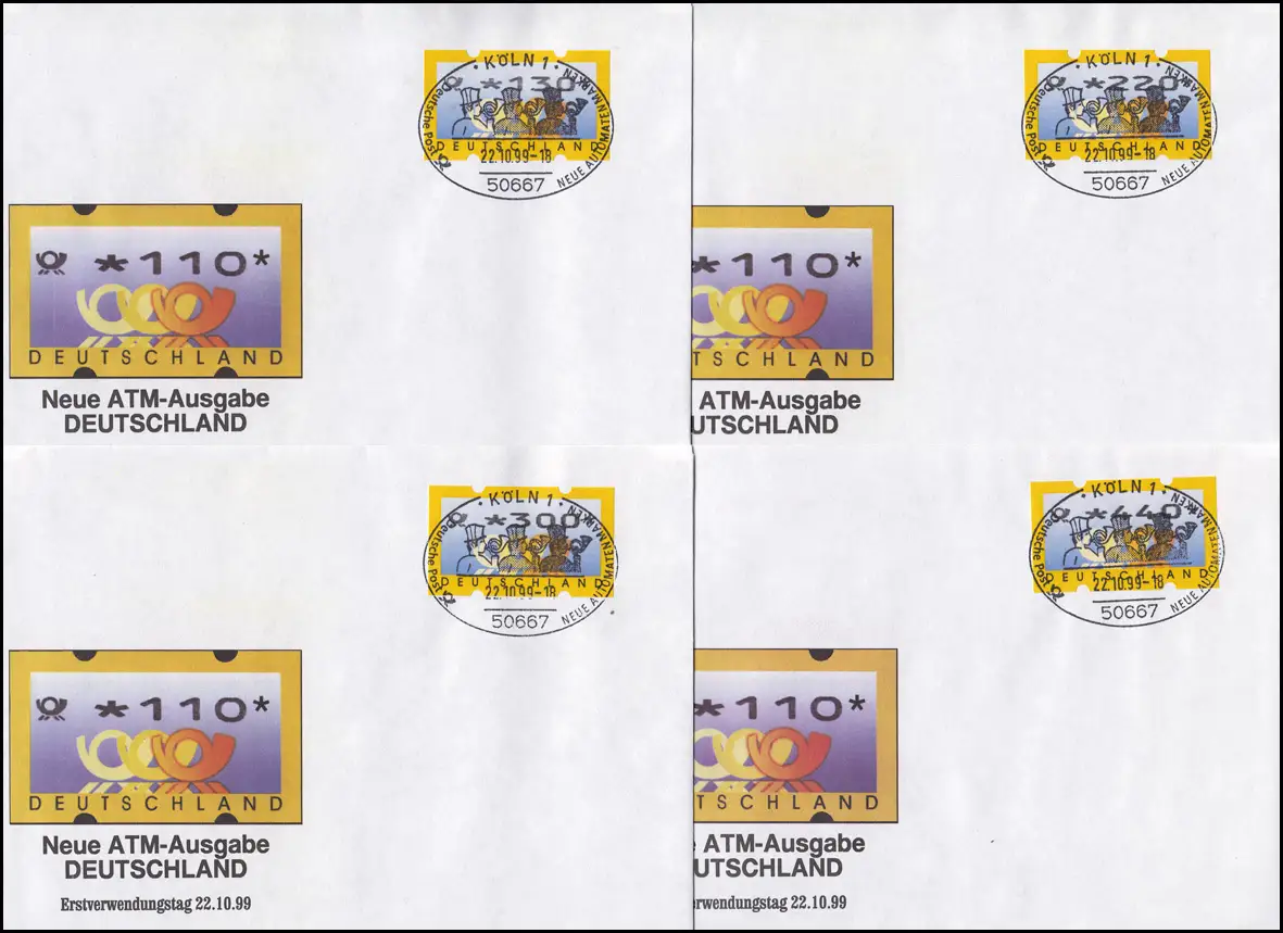 3.2 Posthörner MWZD 8 ATM 10-440 Pf., Satz auf 8 FDC mit ESST Köln 22.10.99