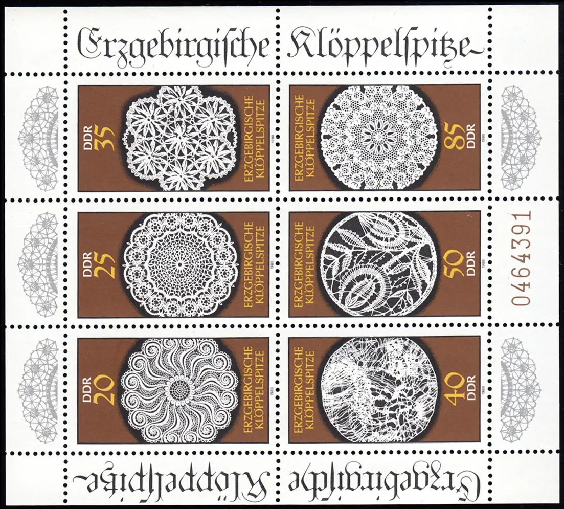 3215-3220 Klöppelspitze-Kleinbogen 1988, postfrisch