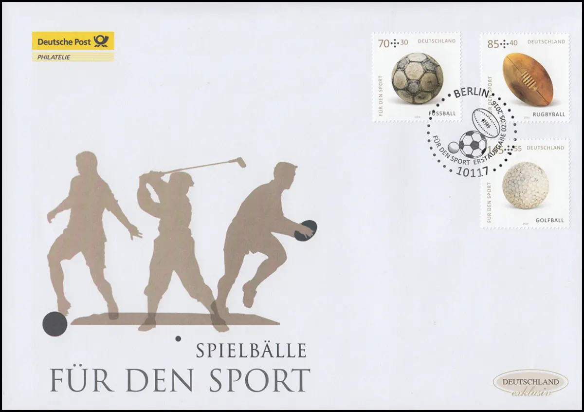 3235-3237 Sporthilfe Spielbälle, Satz auf Schmuck-FDC Deutschland exklusiv