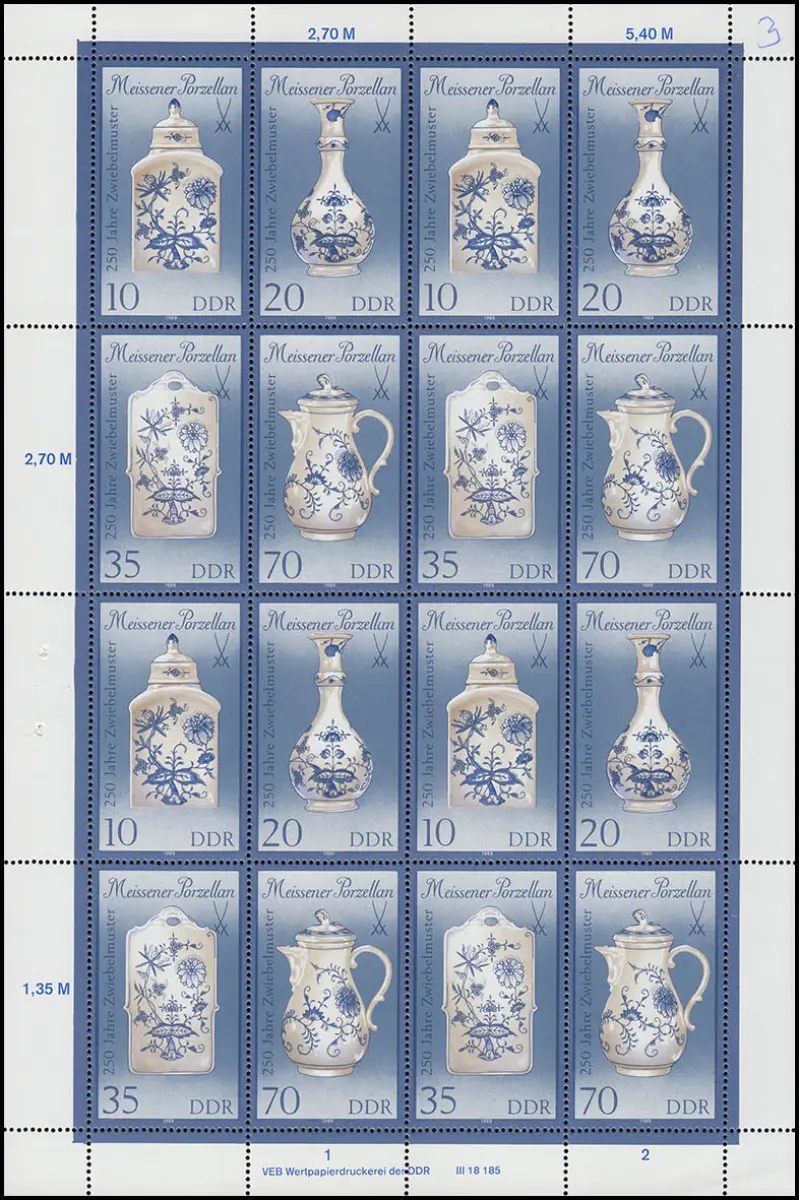 3241-3244II Porzellan 1989, ZD-Bogen OHNE Formnummer, selten, postfrisch **