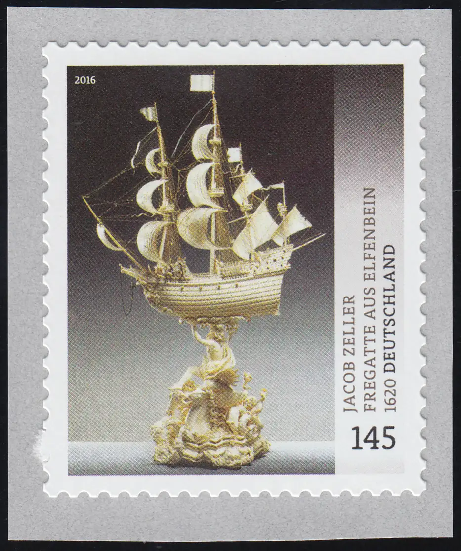 3250 Fregatte aus Elfenbein, Rollenmarke mit Stanzfehler unten links, **