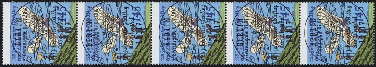 3254 Otto Lilienthal 5er-Streifen aus Rolle mit UNGERADER Nummer, ESSt Berlin