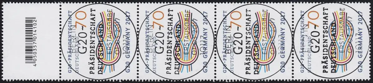 3291 G20-GERMANY, 4er-Streifen mit Nummer und Codierfeld, ESSt Berlin