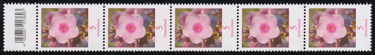 3296 Phlox 5 Cent 200er KLEINE Nr., 5er-Streifen mit Codierfeld (geschl. 4) **