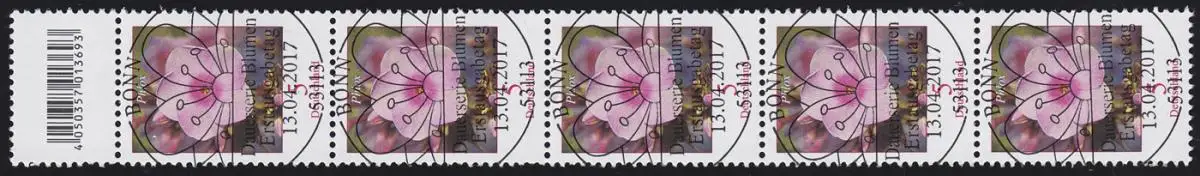 3296 Phlox 5 Cent aus 200er-Rolle, 5er-Streifen mit Codierfeld, ESSt Bonn