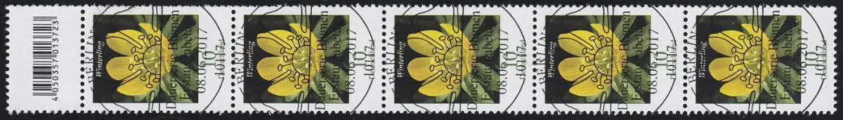 3314 Blume 10 Cent 200er große Nr., 5er-Streifen mit Codierfeld, ESSt Berlin