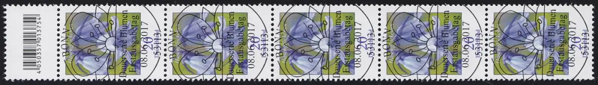 3315 Blume 20 Cent aus 200er-Rolle, 5er-Streifen mit Codierfeld, ESSt Bonn