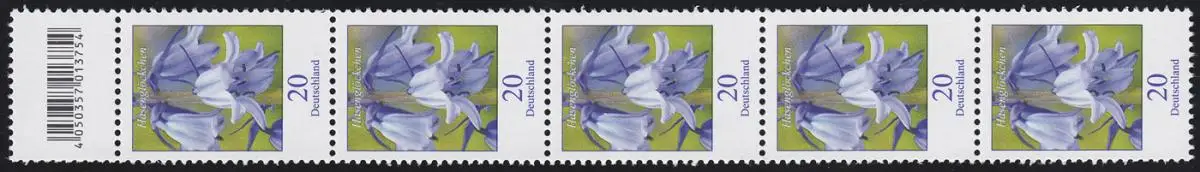 3315 Blume 20 Cent aus 200er große Nummer, 5er-Streifen mit Codierfeld, **