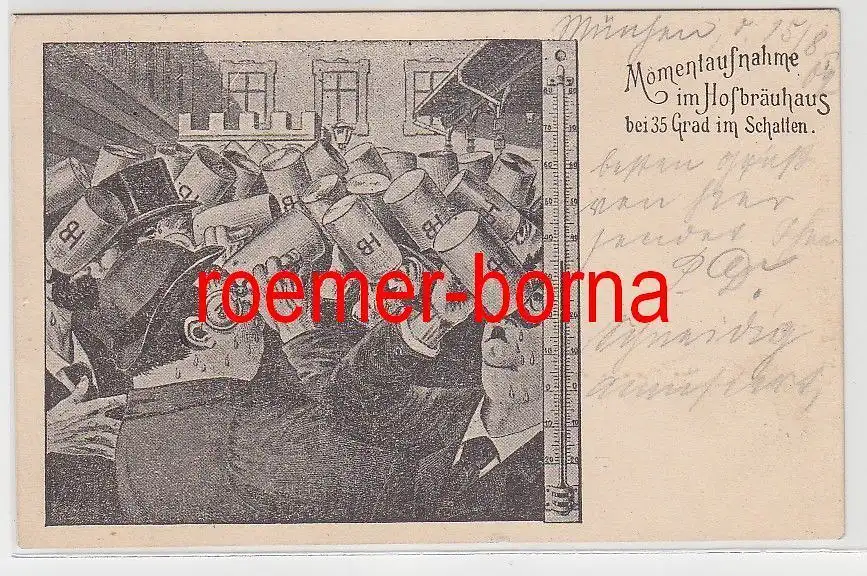 33162 Ak Humor München Momentaufnahme im Hofbräuhaus bei 35 Grad 1902