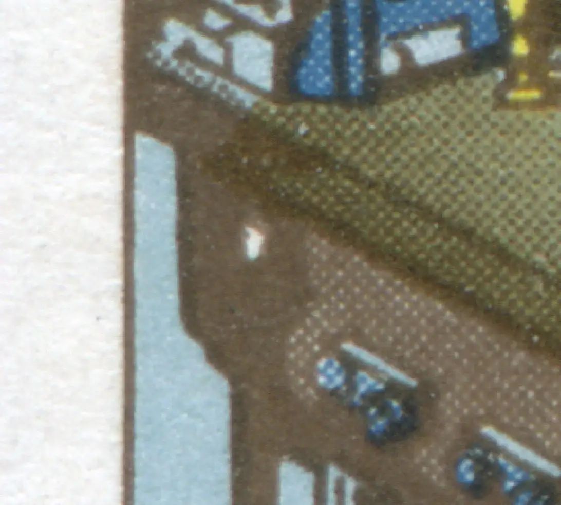 3332 Fernmeldeunion 10 Pf: weißer Fleck über linkem Tischbein, Feld 14 **