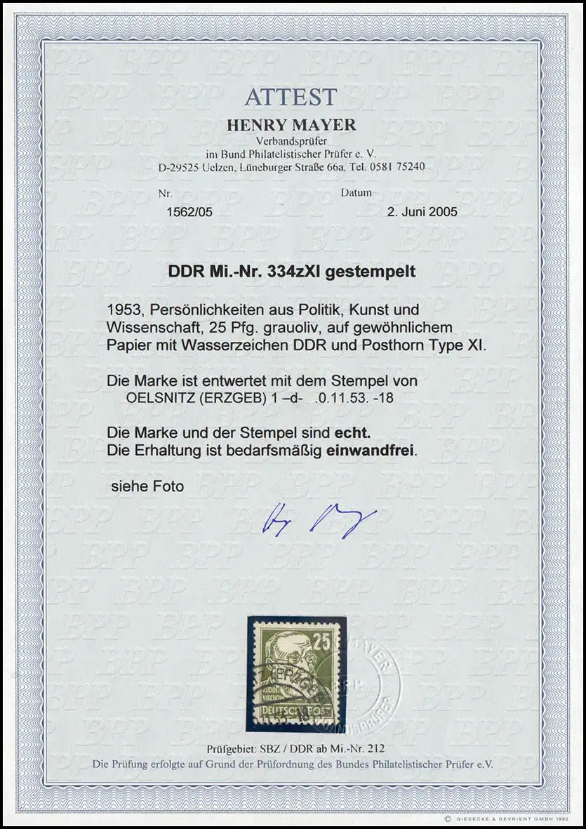 334zXI Virchow - O bedarfsgestempelt OELSNITZ 1953, Fotoattest Mayer einwandfrei