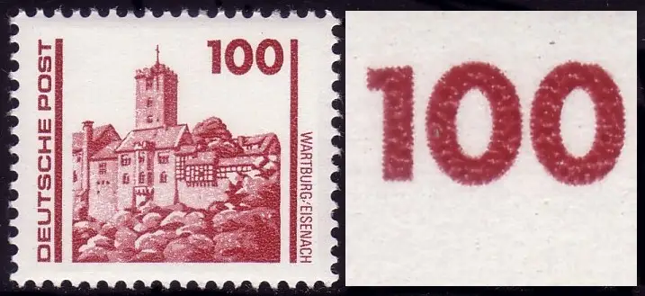 3350II Bauwerke 100 Pf: oben abgeschrägte 1 und Kerbe oben in 2. Null, Feld 9 **