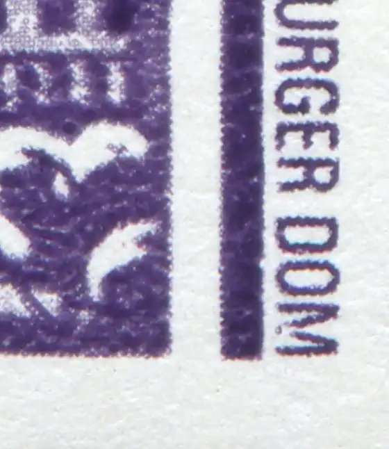 Postfrischer und ungefalteter Rand-Sechser-Block mit dem MICHEL-Plattenfehler I "M von DOM unten beschädigt" auf Feld 49