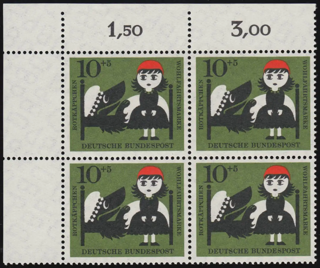 341 Wohlfahrt Grimm 10+5 Pf Rotkäppchen ** Eck-Vbl o.l. Zähnung dg-7