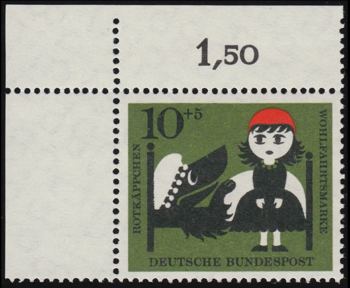 341 Wohlfahrt Grimm 10+5 Pf Rotkäppchen ** Ecke o.l. Zähnung dg-7