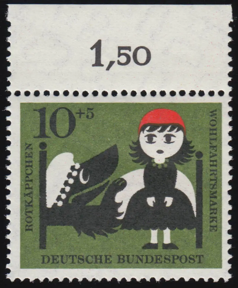 341 Wohlfahrt Grimm 10+5 Pf Rotkäppchen ** Oberrand 7 Löcher