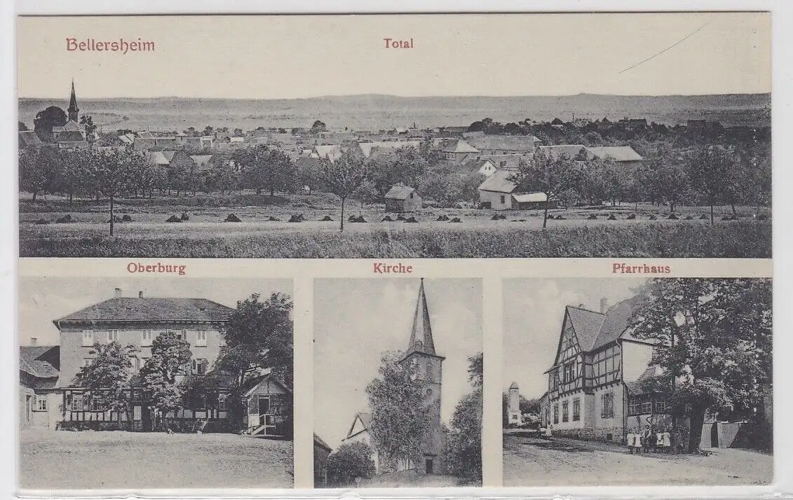 34100 Mehrbild Ak Bellersheim Total, Oberburg, Kirche, Pfarrhaus um 1910