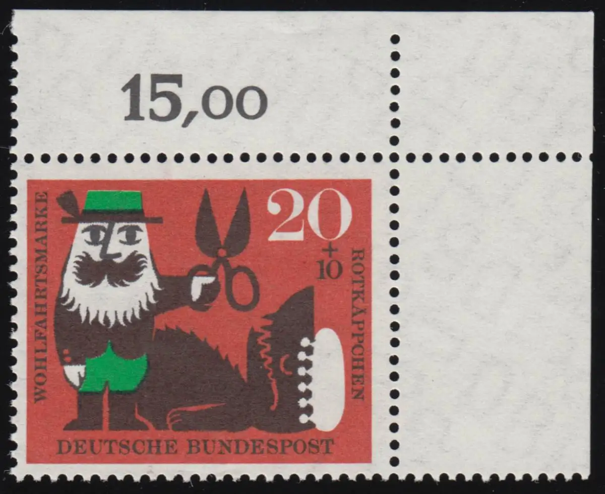 342 Wohlfahrt Grimm 20+10 Pf Rotkäppchen ** Ecke o.r. Zähnung dg-7