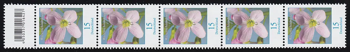 3424 Wiesenschaumkraut 15 Cent, 5er-Streifen mit Codierfeld, kleine Nr. **