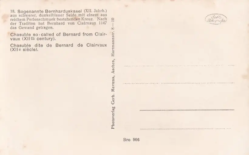3446 - - Aachener Kaiserdom , Sogenannte Bernharduskasel , Chasuble so calles of Bernard from Clairvaux - nicht gelaufen
