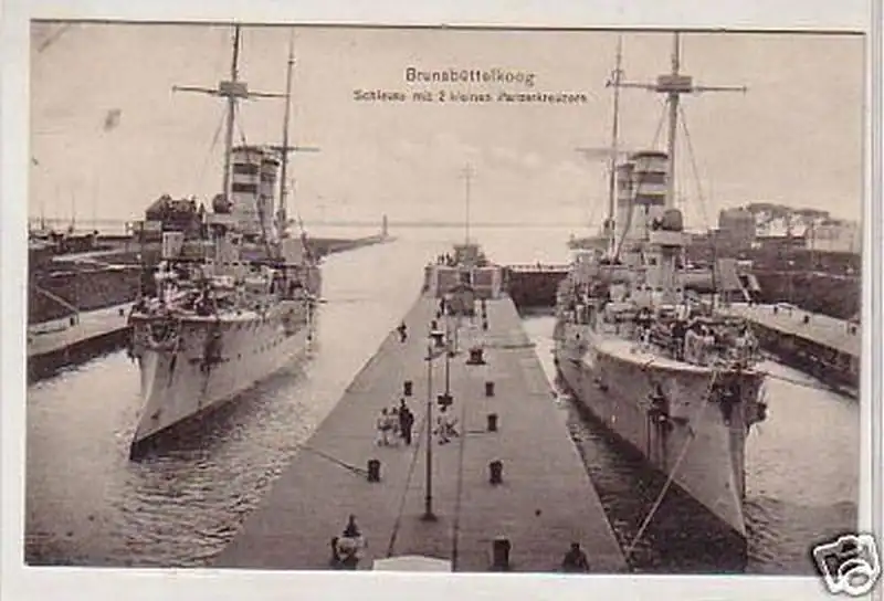 34499 Ak Brunsbüttelkoog Schleuse mit 2 Panzerkreuzern