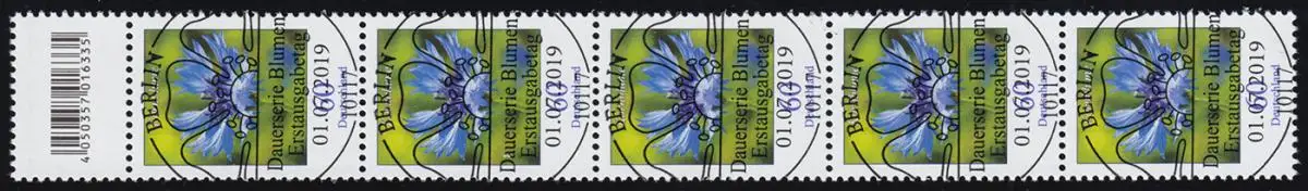 3468 Kornblume 60 Cent 500er große Nr., 5er-Str. mit Codierf. ESSt Berlin 1.7.19