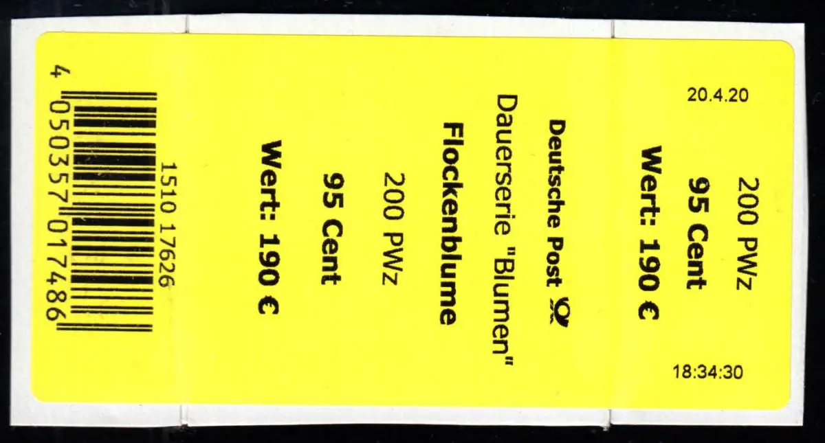3470 Flockenblume 95 Cent +CF (geschl. 4) Banderole für 200 Stück, kleine Nr.