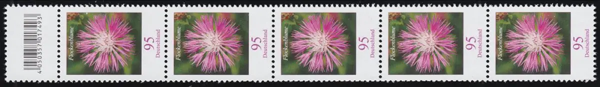 3470 Flockenblume 95 Cent aus 500er-Rolle, 5er-Streifen mit Codierfeld **
