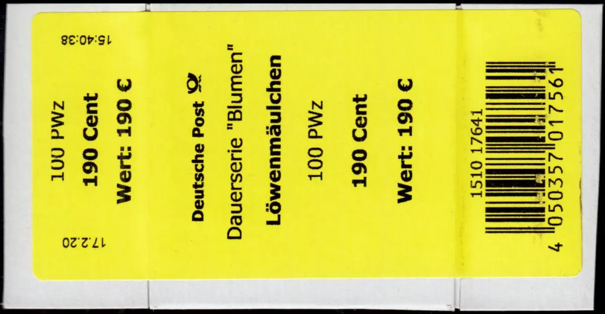 3474 Löwenmäulchen 190 Cent + CF Banderole / Aufkleber, kleine Nummer