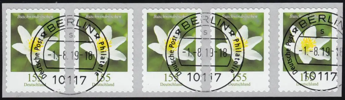 3484 Buschwindröschen 155 Cent sk aus 500er 5er-Streifen, waager. ung. Nr. ET-O