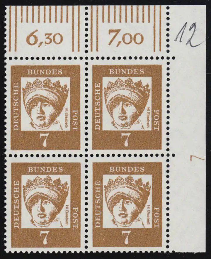 348y DZ Hl. Elisabeth 7 Pf als Eck-Vbl o.r. mit Druckerzeichen 7, **