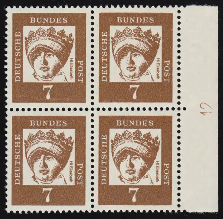 348y DZ Hl. Elisabeth 7 Pf als Viererblock rechts mit Druckerzeichen 12, **