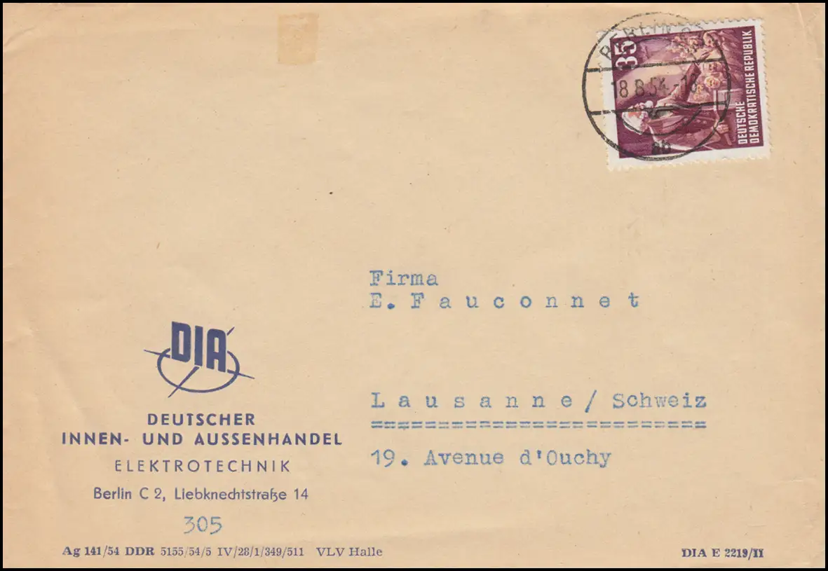 von der Firma DEUTSCHER INNEN- UND AUSSENHANDEL Elektrotechnik nach Lausanne