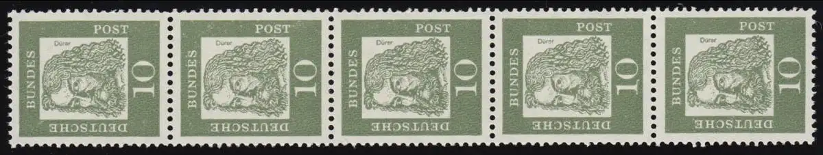 350y Bed. Deutsche y 10 Pf 1000er-Rolle, 5er-Streifen + Nr. **