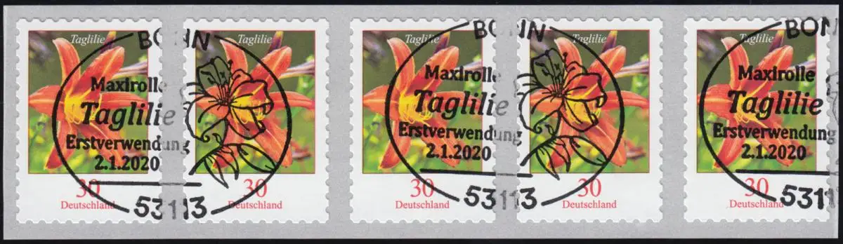 3516 Taglilie 30 Cent sk aus 10000er 5er-Streifen mit UNGERADER Nummer EV-O Bonn