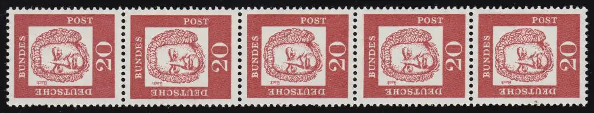 352x Bed. Deutsche ohne Fluo 20 Pf, 5er Streifen der seltenen 500er Rolle, **