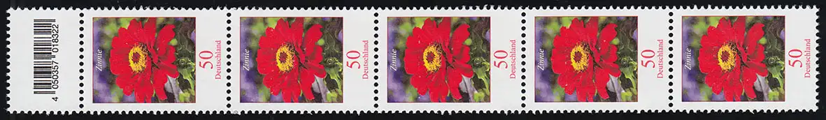 3535 Zinnie 50 Cent aus 200er-Rolle, 5er-Streifen mit Codierfeld **