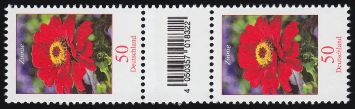 3535 Zinnie 50 Cent aus 200er-Rolle, Paar mit Nr., Codierfeld, ohne Nr. **