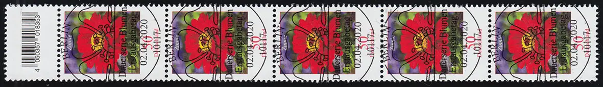 3535 Zinnie 50 Cent aus 500er-Rolle, 5er-Streifen mit Codierfeld, ESSt Berlin