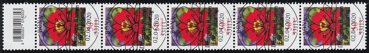 3535 Zinnie 50 Cent aus 500er-Rolle, 5er-Streifen mit Codierfeld, ESSt Bonn