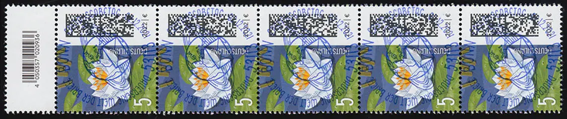 3644 Seebriefrose 5 Cent aus 200er, 5er-Streifen mit Codierfeld, ESSt Bonn