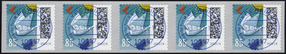 3652 Brieftaube 85 Cent sk aus 100er 5er-Streifen UNGERADE Nummer, ET VS Berlin