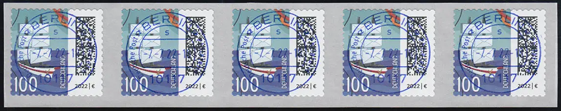 3653 Briefsegler 100 Cent sk aus 5000er, 5er-Streifen UNGERADE Nr EV-O VS Berlin