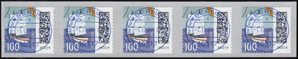 3653 Briefsegler 100 Cent sk aus 500er, 5er-Streifen UNGERADE Nr EV-O VS Berlin