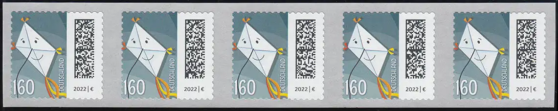 3654 Briefdrachen 160 Cent sk 5000er, 5er-Streifen UNGERADE Nummer **